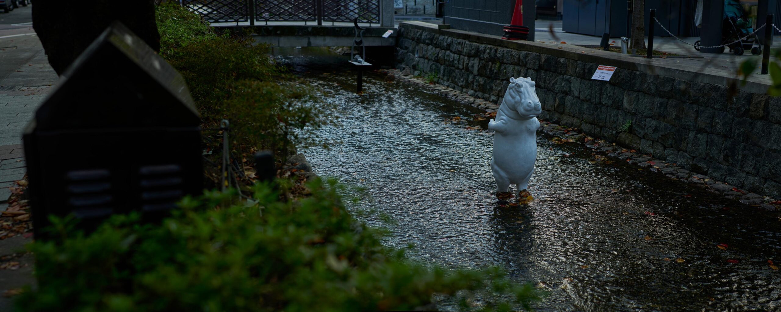 京都最大の繁華街、河原町(四条〜三条)近く。1本東側の「木屋町通り」の横に流れる高瀬川の中にて「第2回 京都高瀬川アートフェスティバル」がおこなわれています。※〜 2025年11月24日(月祝)