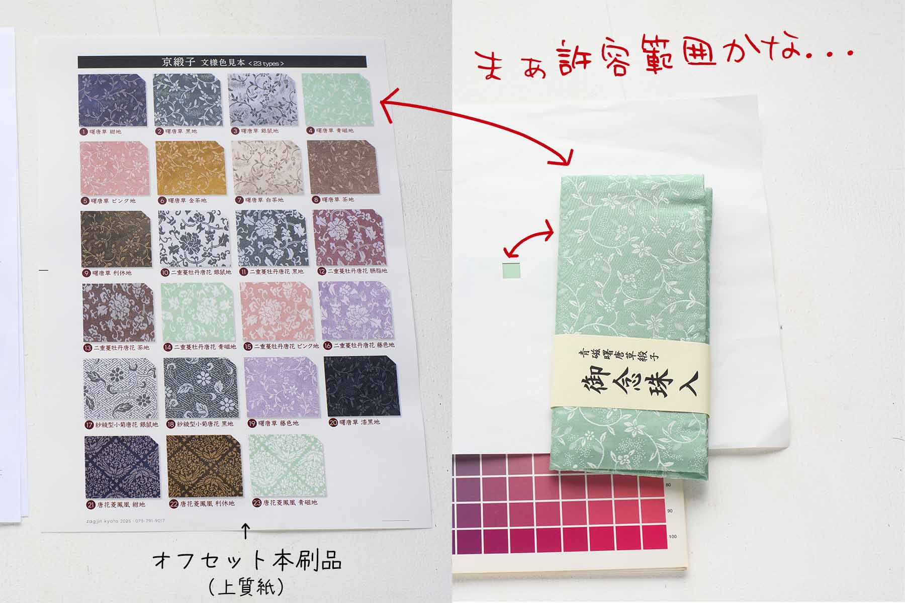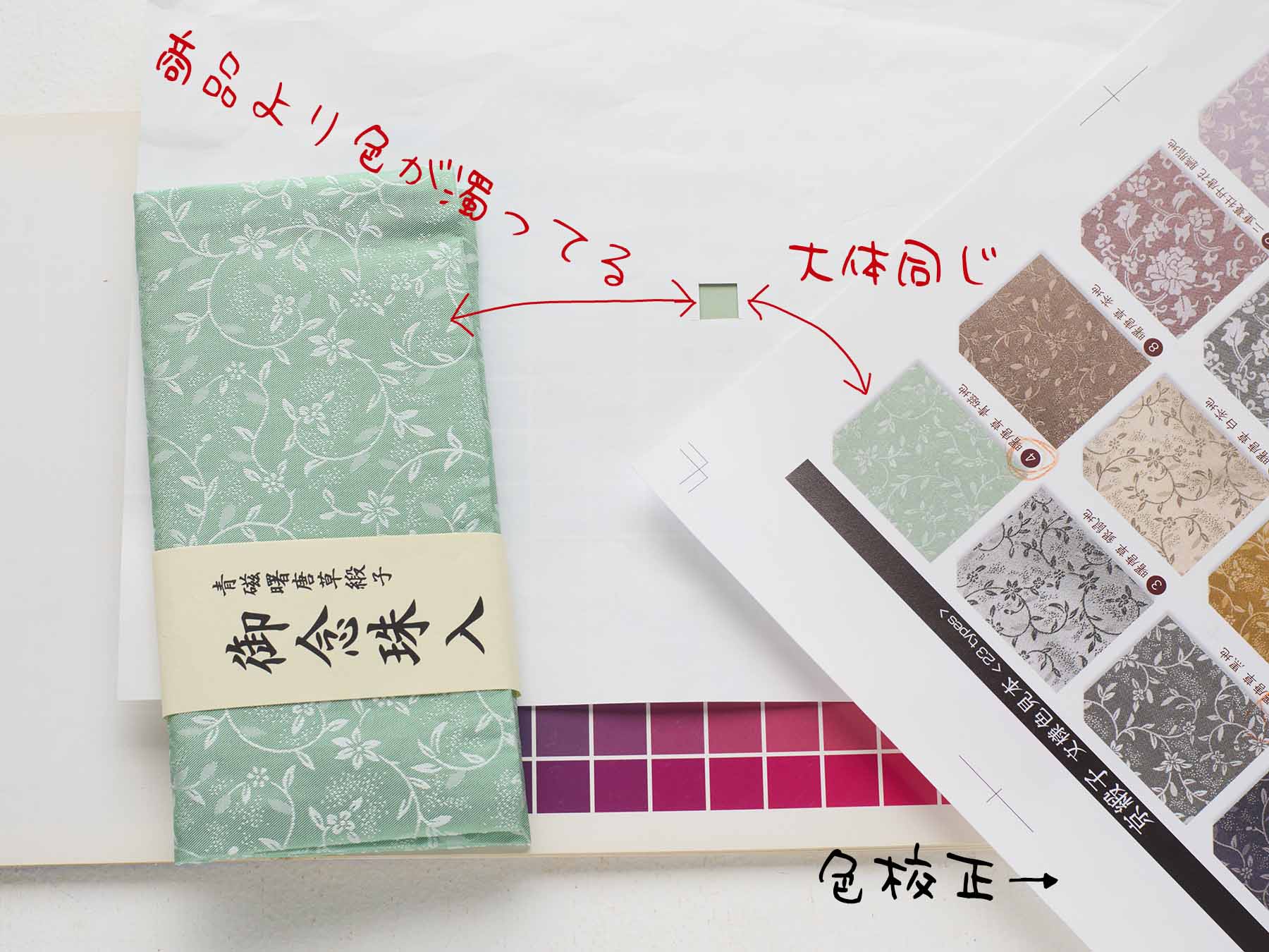 ※今回ご紹介の浅葱色だけじゃなく、色校正時に調整が必要なものも色調整して、データ差替えをおこないました。