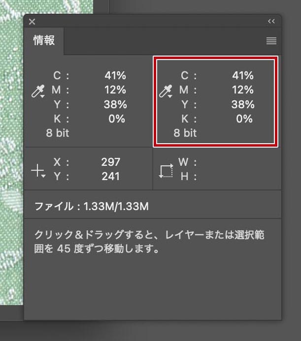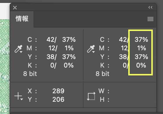 データから拾った均したCMYK数値通りのチャートの色を確認します。