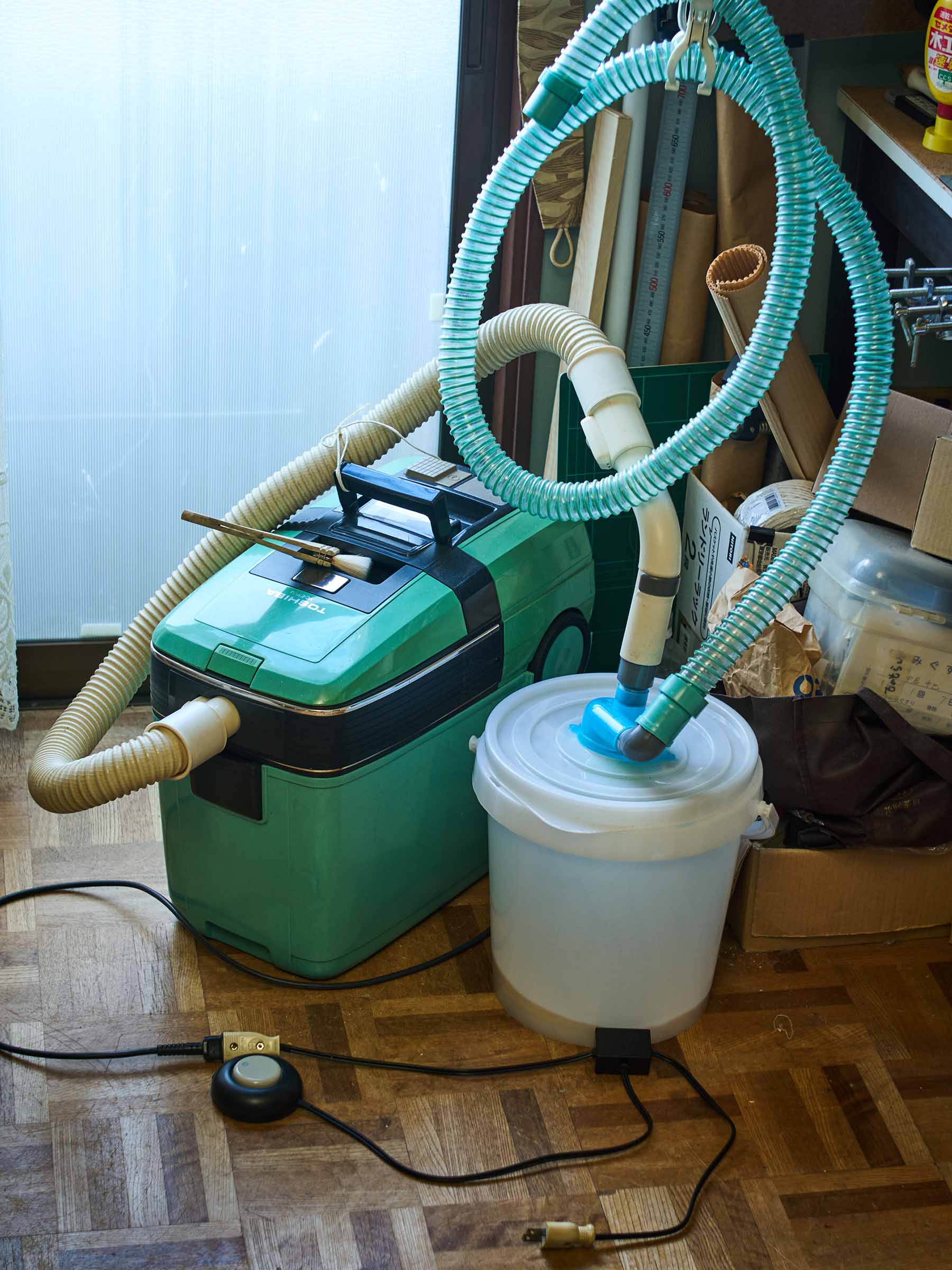 ウチに眠っていた古い昭和式掃除機をひっぱり出して来て、そのまま集塵機として使用していました。ところが、まま掃除機だと、すぐに紙パックがいっぱいになり、吸引力が落ちてきます。