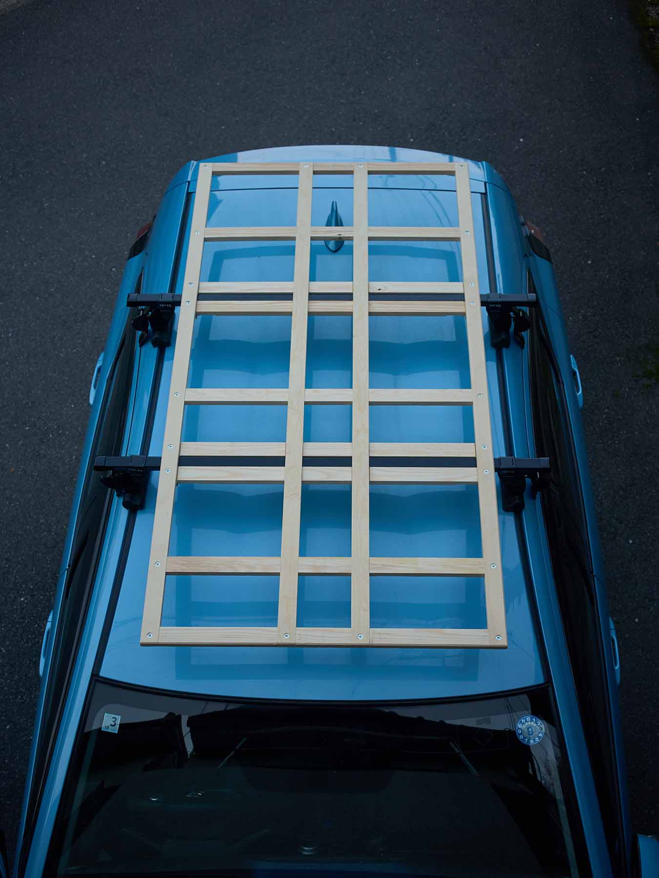 3×6の板をしっかり縛り付けられる設計。(天面は完全にツライチ)